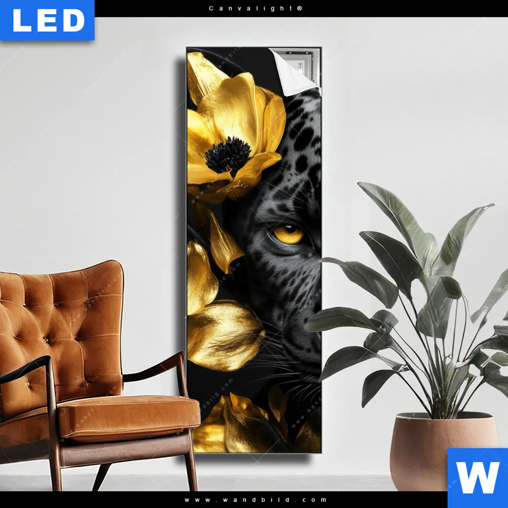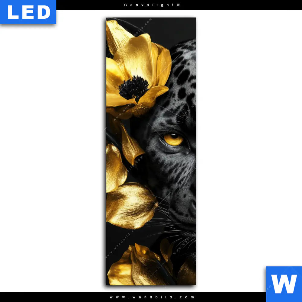 Canvalight® Leuchtbild | Goldblumen & Panther | Schmal