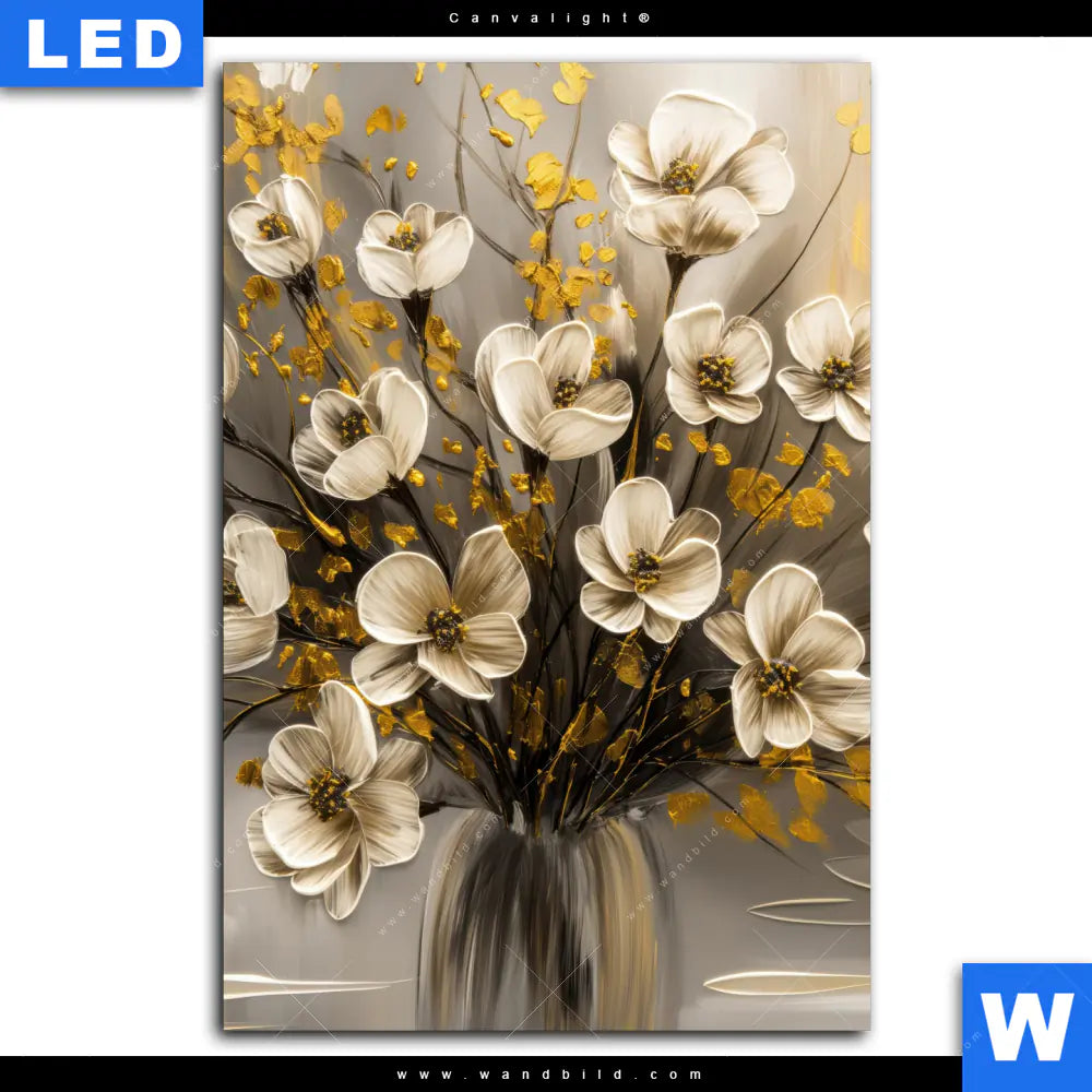Canvalight® Leuchtbild | Goldene Blütenpoesie | Hochformat