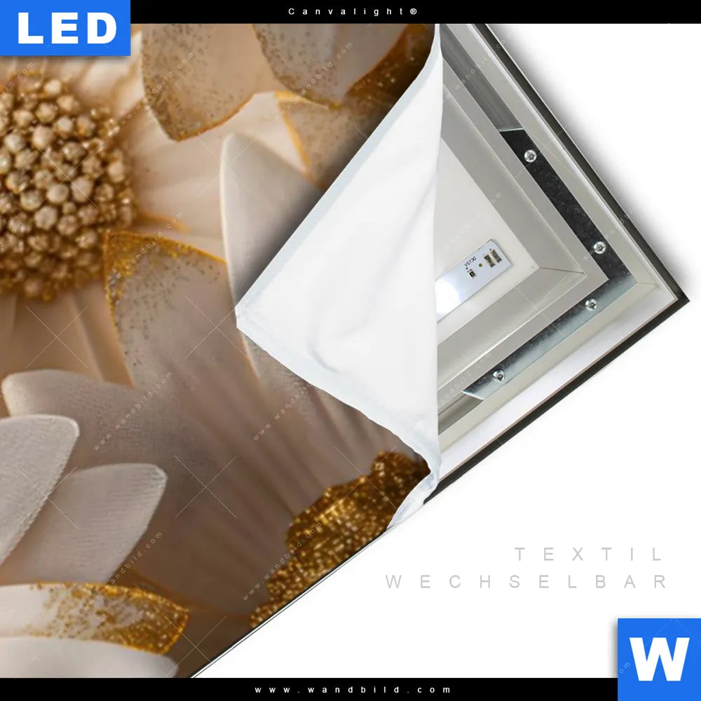 Canvalight® TEX Leuchtbild | Goldene Blütenpracht | Panorama