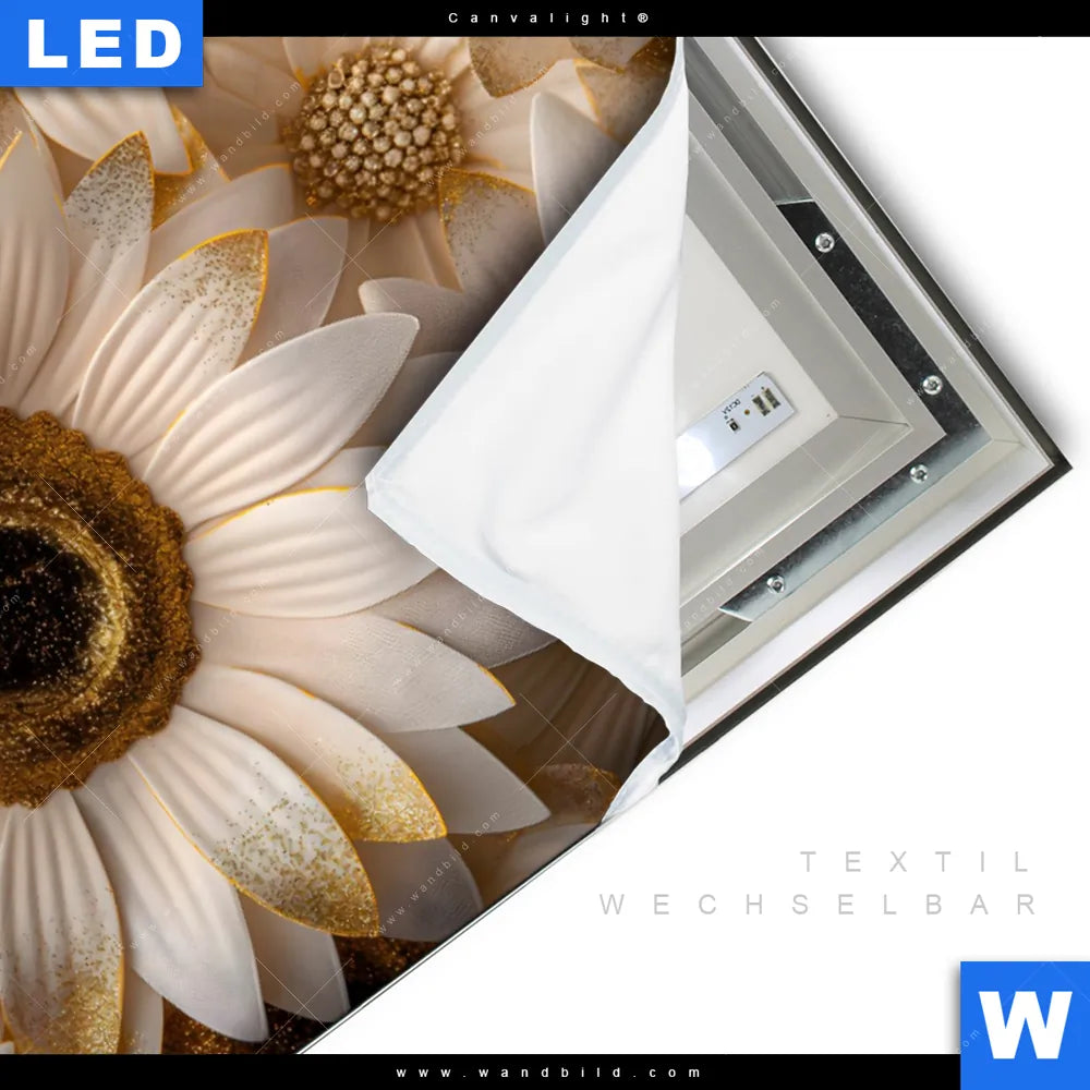 Canvalight® TEX Leuchtbild | Goldene Blütenpracht | Querformat
