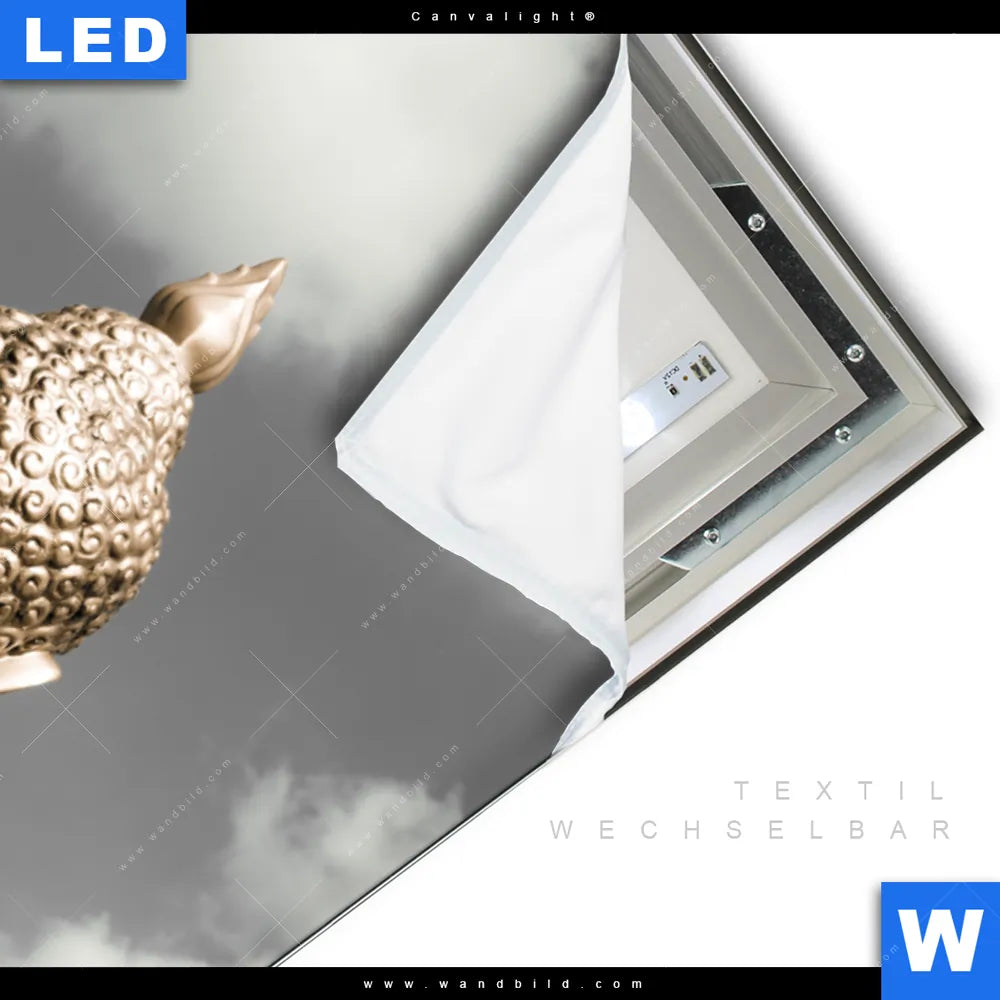 LED-Textilrahmen-Bild mit austauschbarem Buddha - Feng Shui Textil-Druck (Wechselbild)
