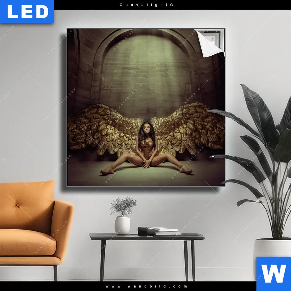 Canvalight® Leuchtbild | Goldene Flügel | Quadrat