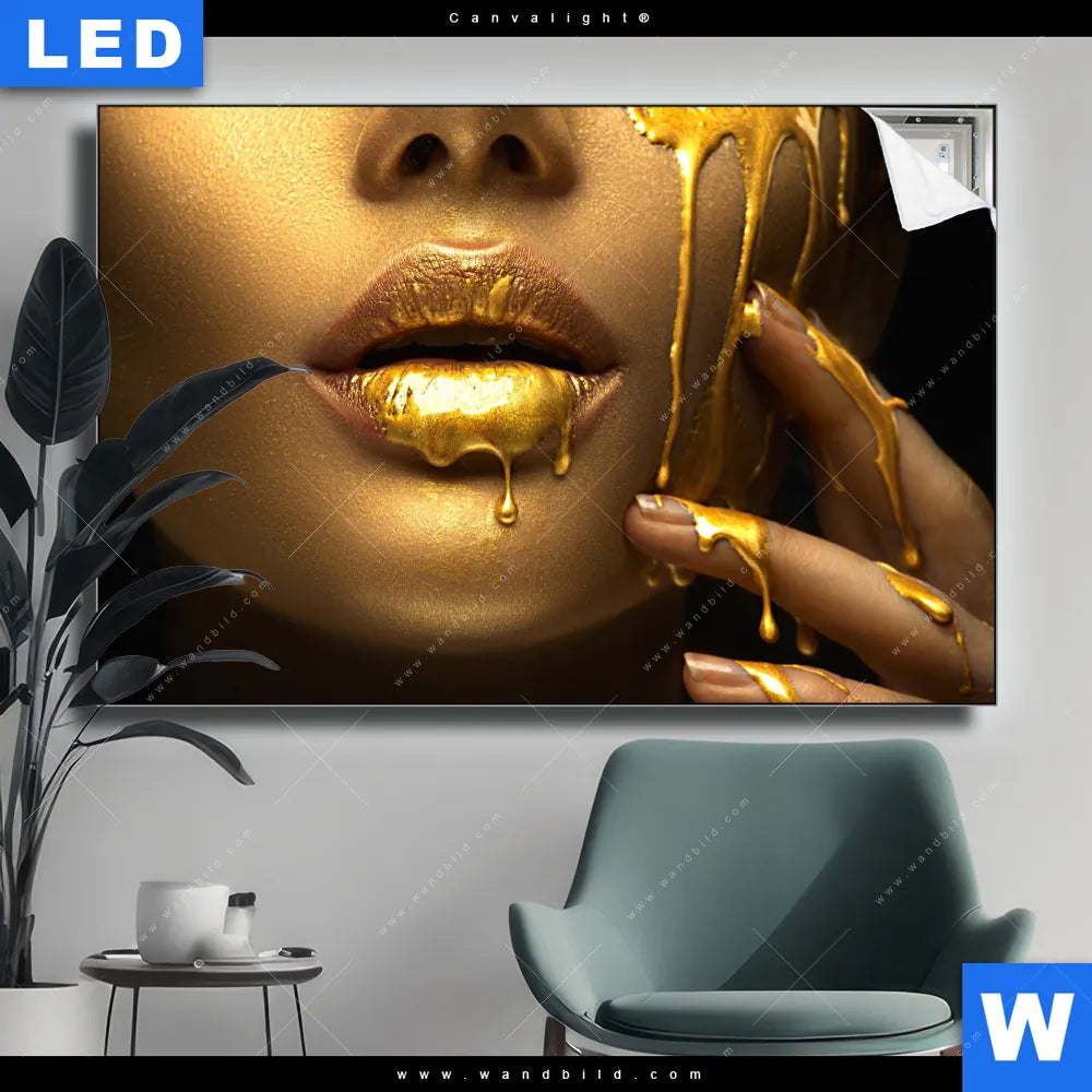 Canvalight® TEX Leuchtbild | Goldene Lippen | Querformat