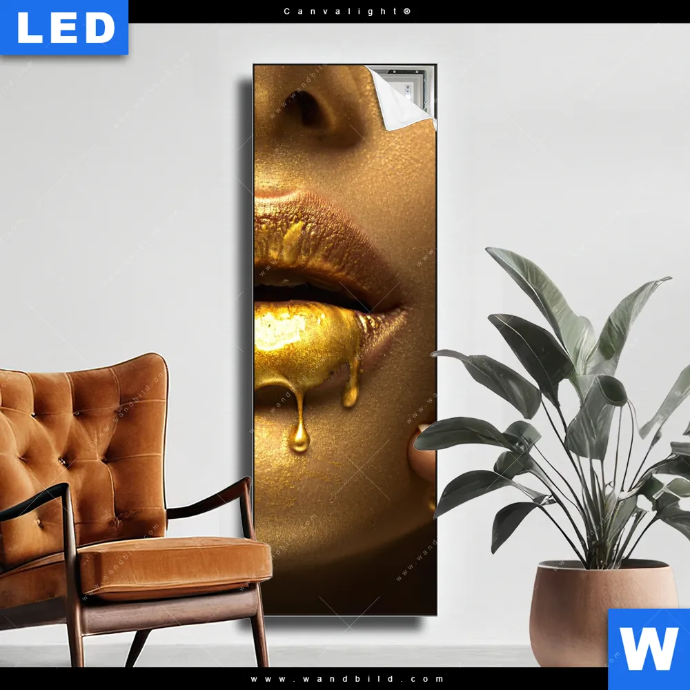 Canvalight® Leuchtbild | Goldene Lippen | Schmal