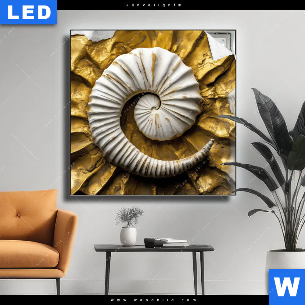 Canvalight® TEX Leuchtbild | Goldene Muschel-Kunst | Quadrat