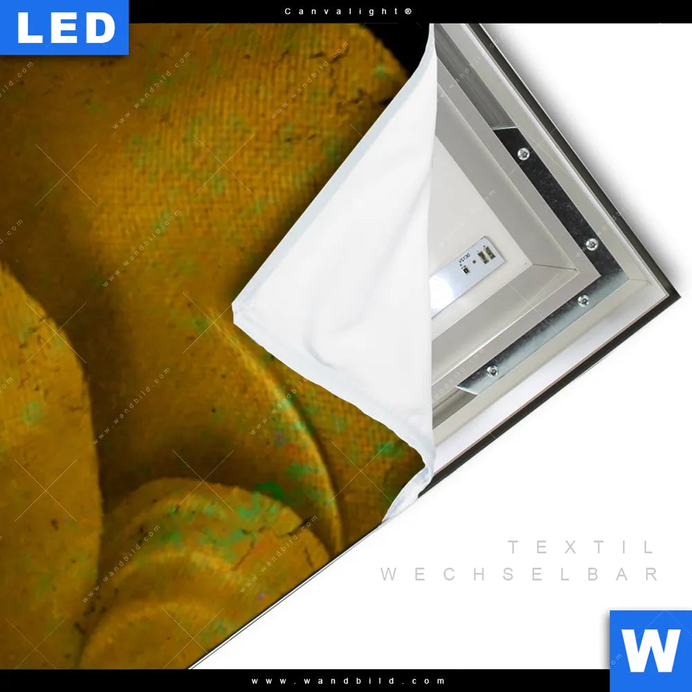 LED-Textilrahmen-Bild mit austauschbarem Blumen - Botanik Textil-Druck (Wechselbild)