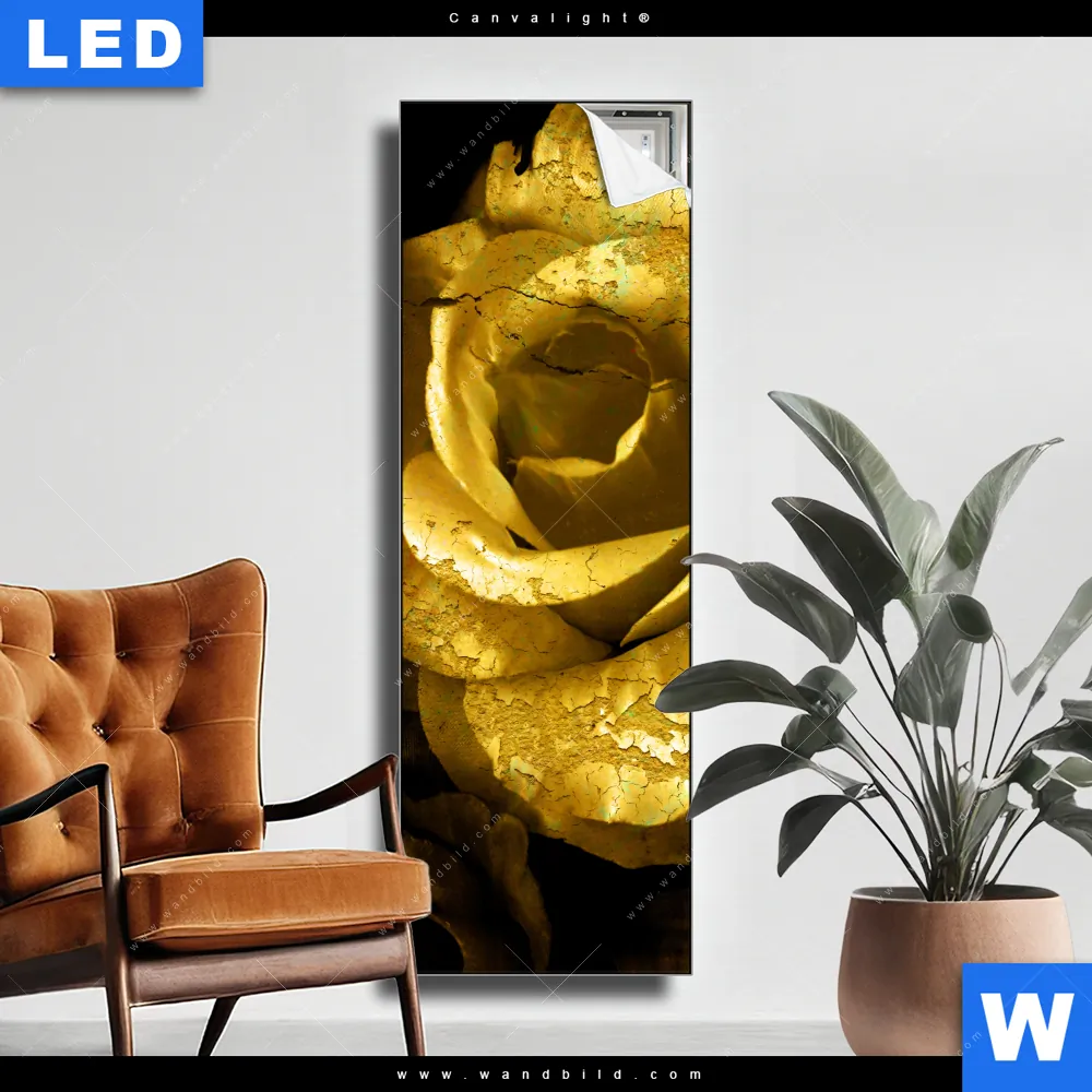 Canvalight® Leuchtbild | Goldene Rose | Schmal
