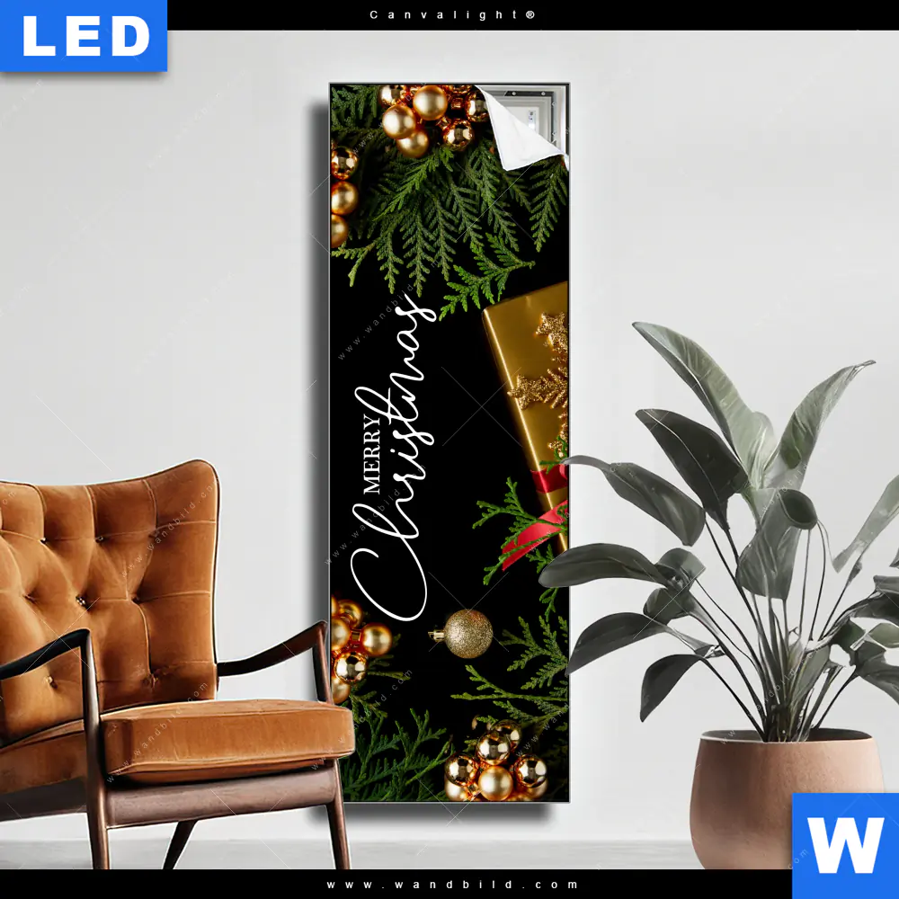 Canvalight® Leuchtbild | Goldene Weihnachtsgrüße | Schmal