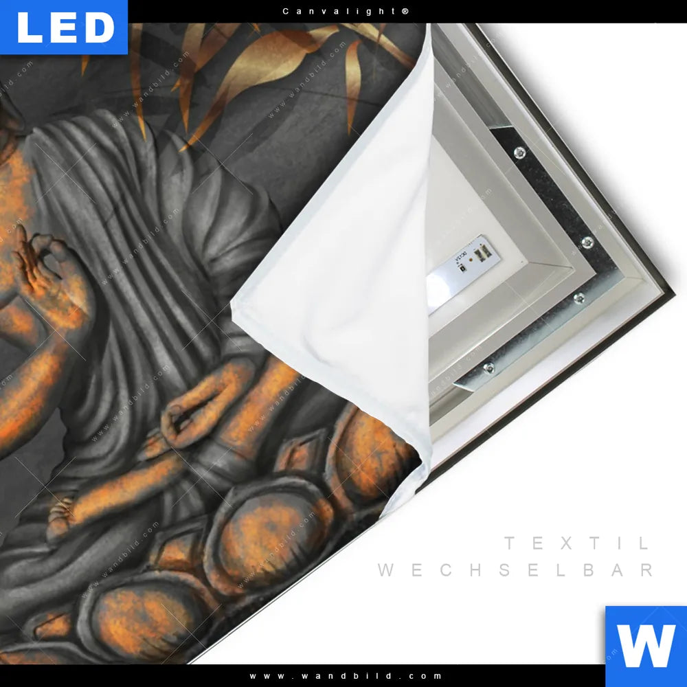 LED-Textilrahmen-Bild mit austauschbarem Buddha - Feng Shui Textil-Druck (Wechselbild)
