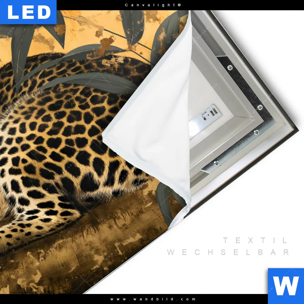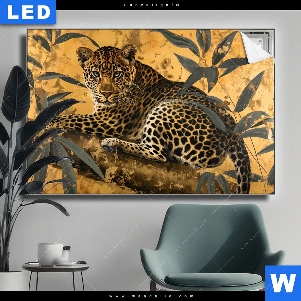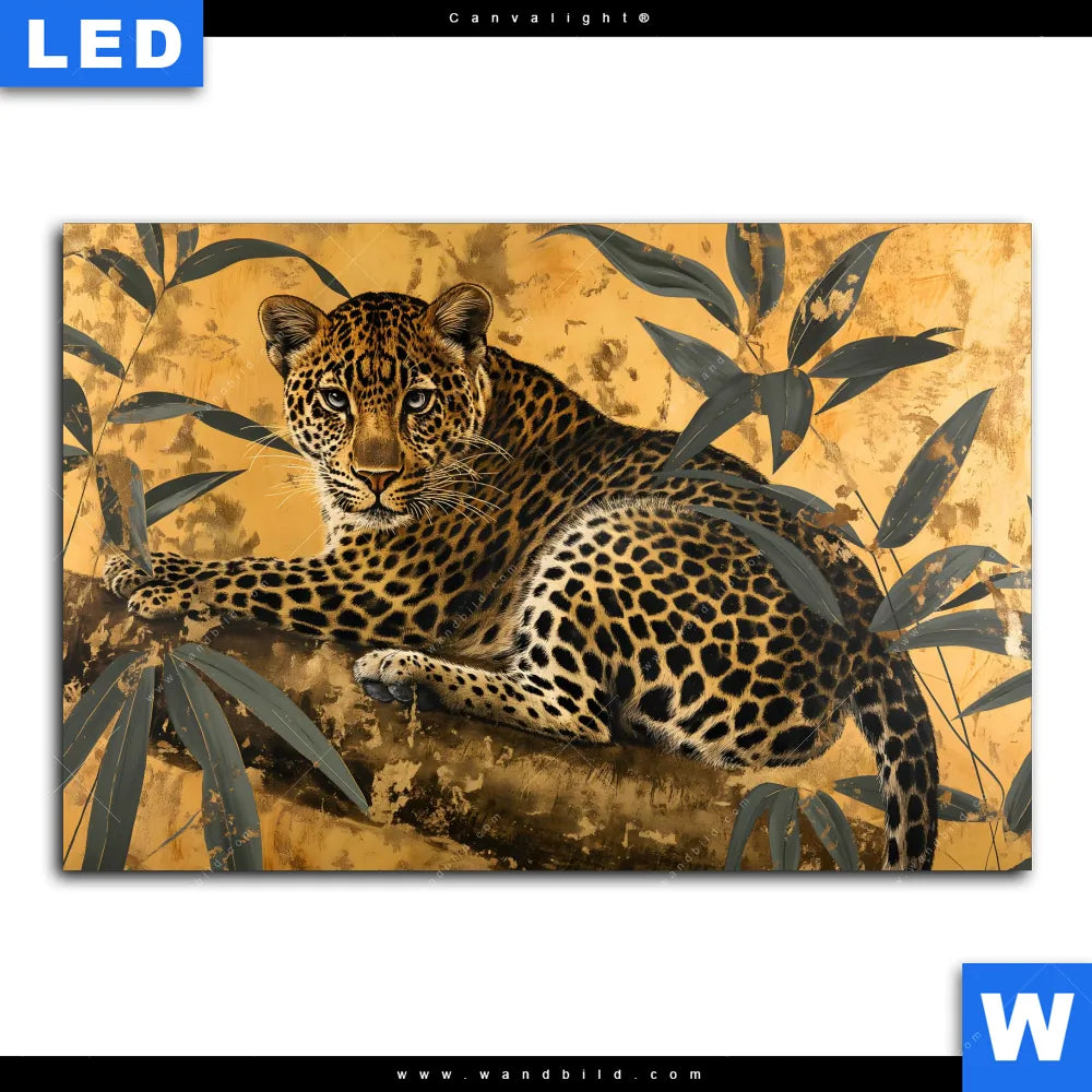 Canvalight® TEX Leuchtbild | Goldener Leopard - Imposanter Jäger | Querformat