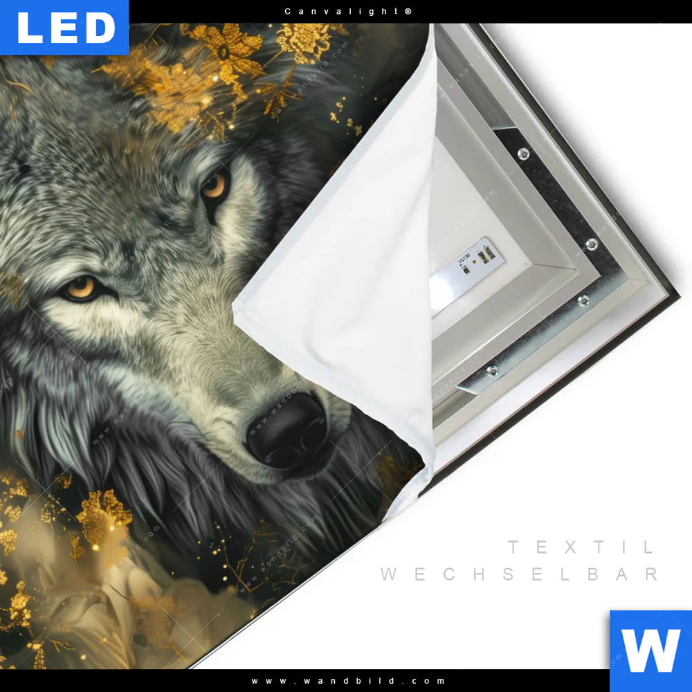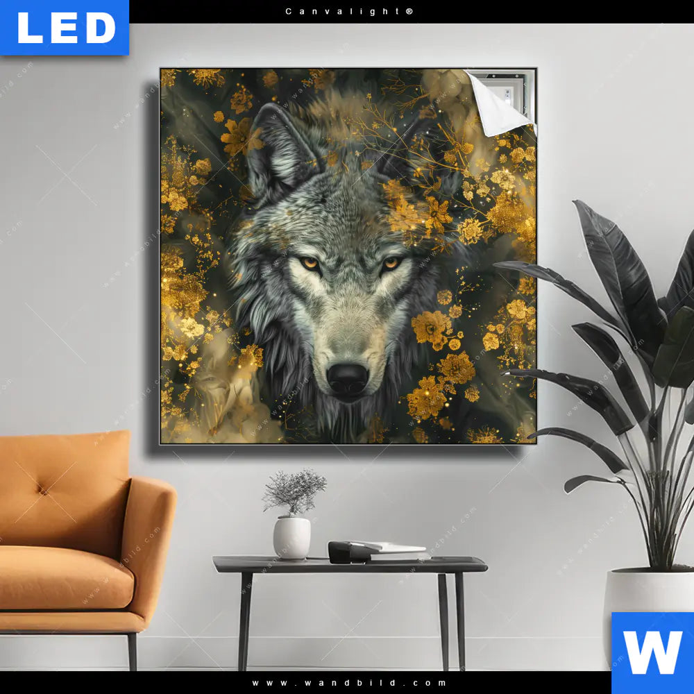 Canvalight® TEX Leuchtbild | Goldener Wolfblick | Quadrat