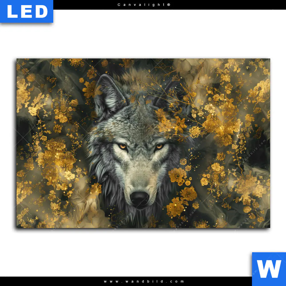 Canvalight® Leuchtbild | Goldener Wolfblick | Querformat