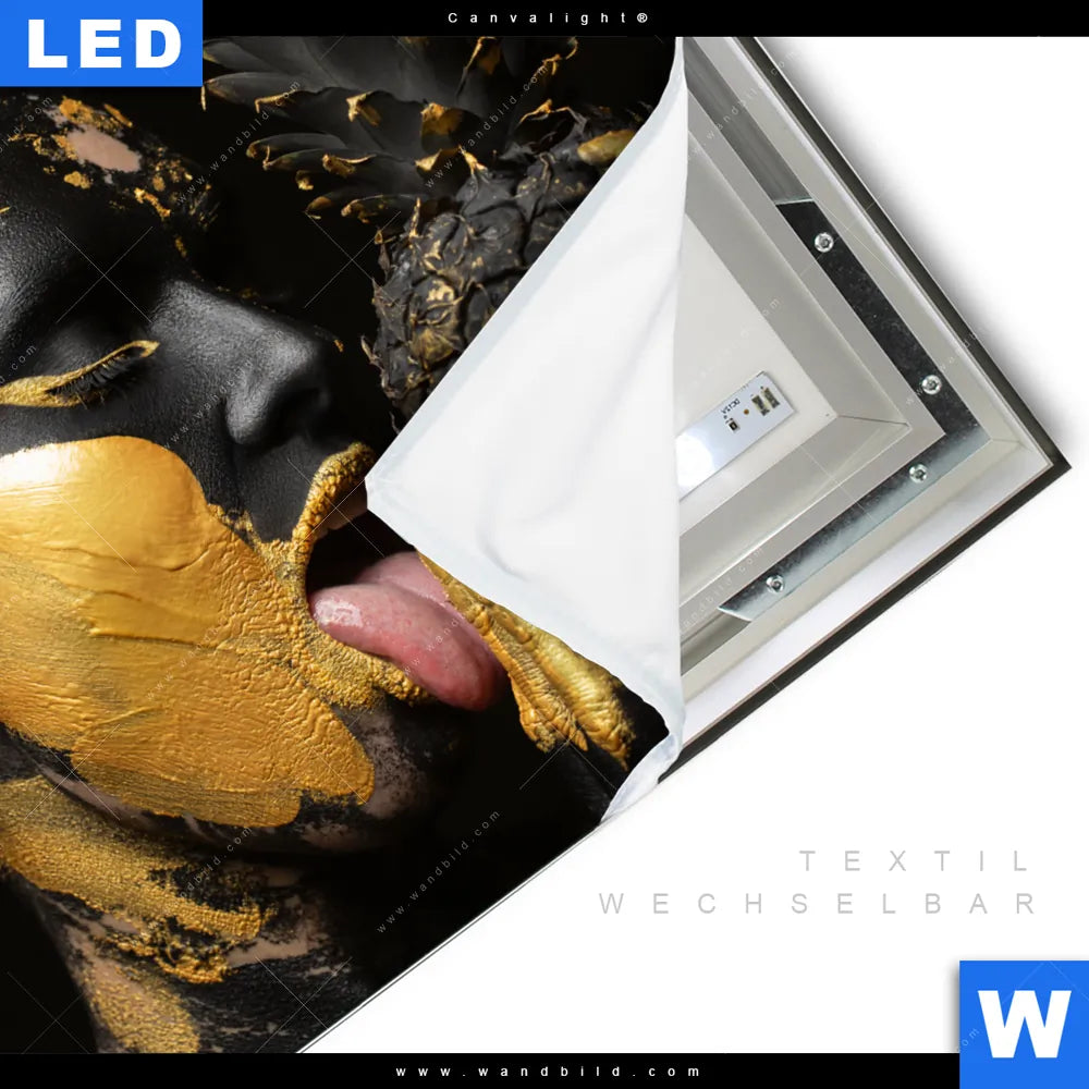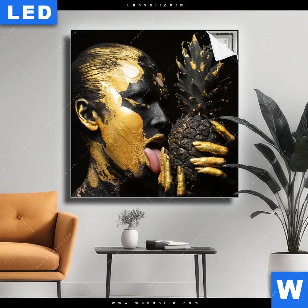 Canvalight® TEX Leuchtbild | Goldenes Ananasmädchen No.2 | Quadrat