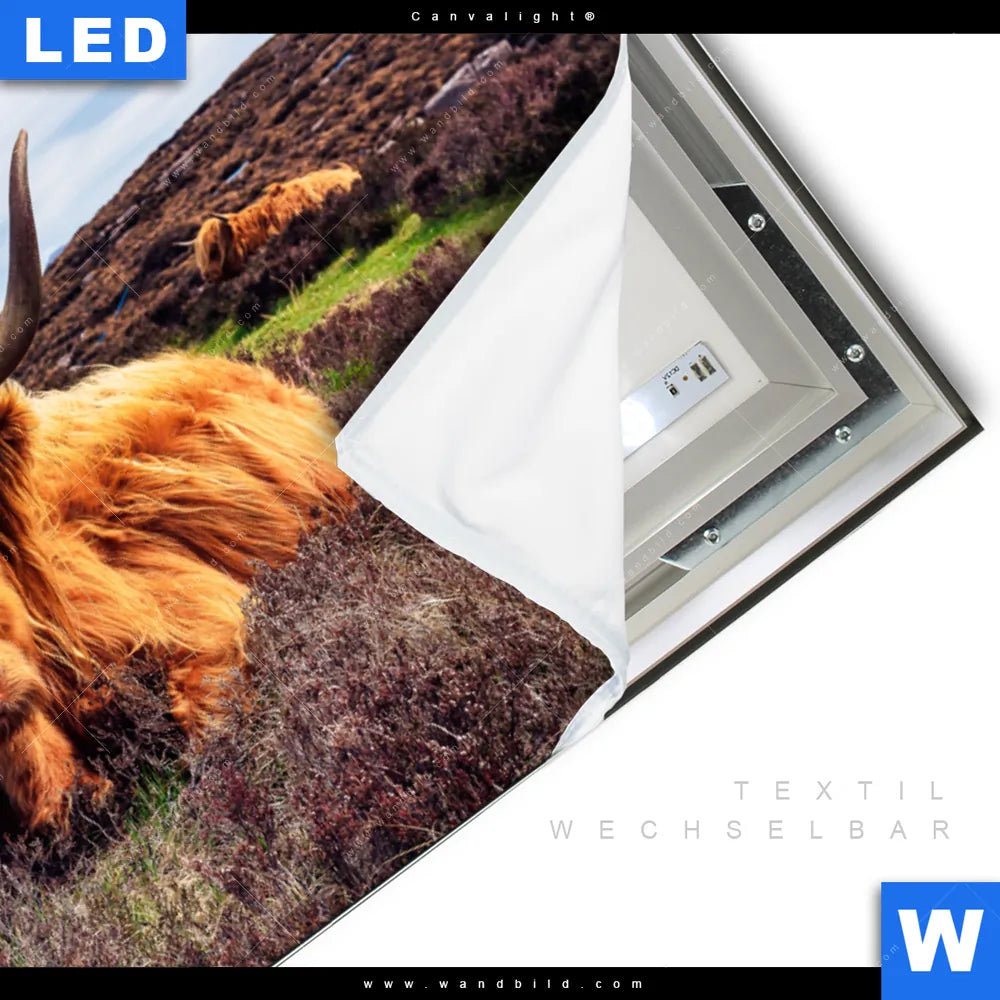 Canvalight® TEX Leuchtbild | Grasendes Hochlandrind | Querformat