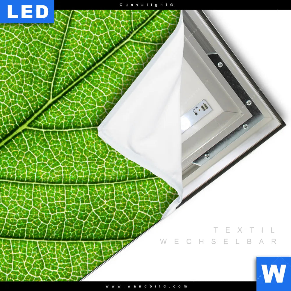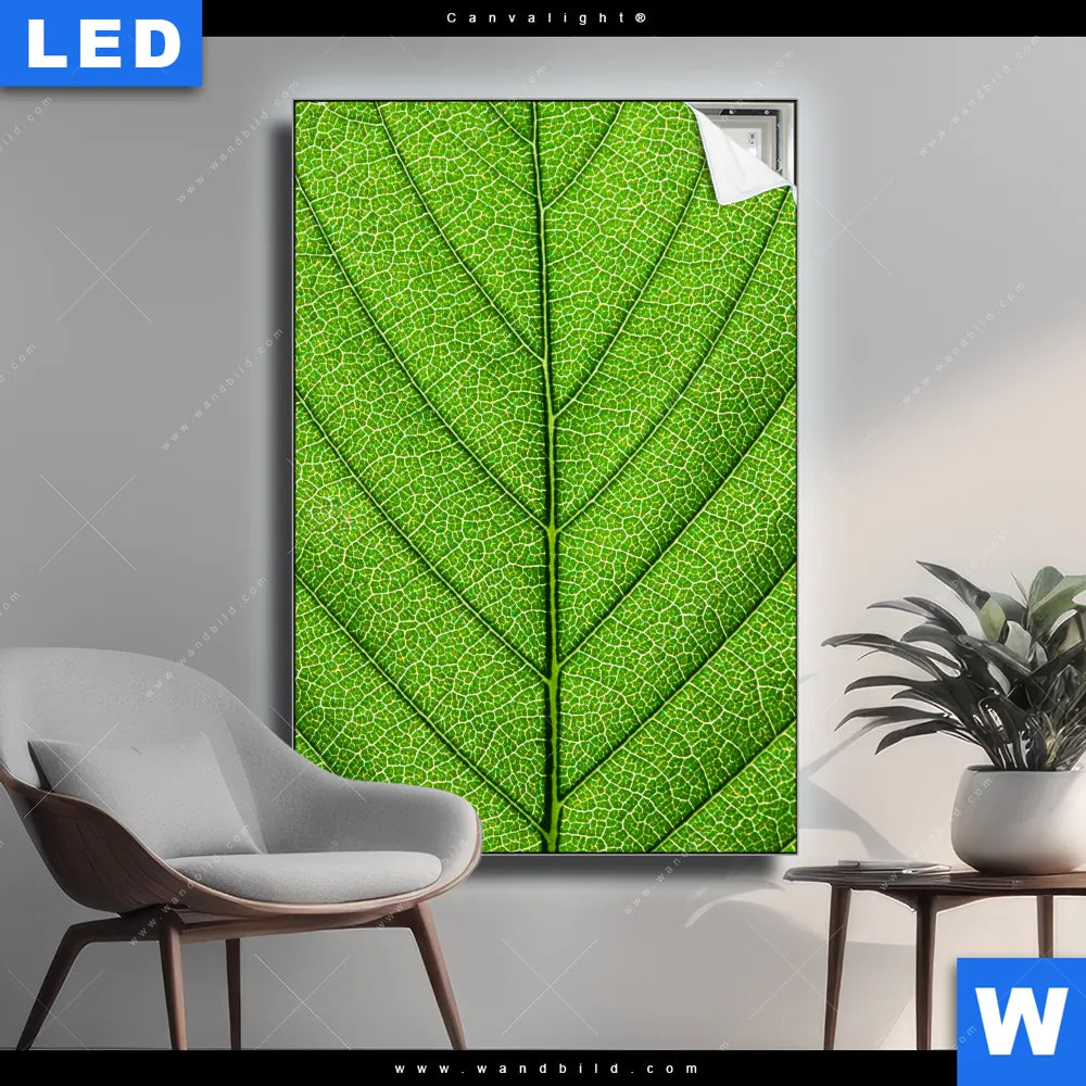 Canvalight® TEX Leuchtbild | Grüne Blattadern | Hochformat