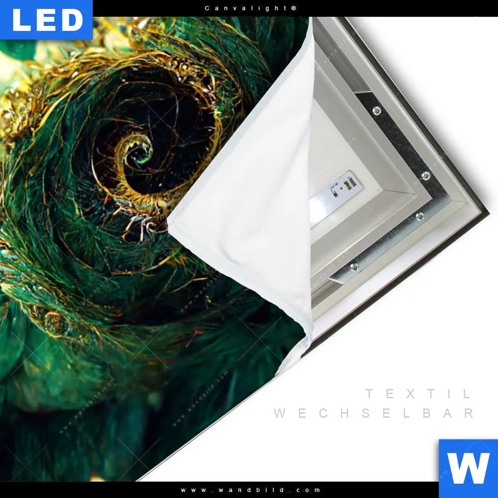 Canvalight® TEX Leuchtbild | Grüne Spiralblätter | Querformat