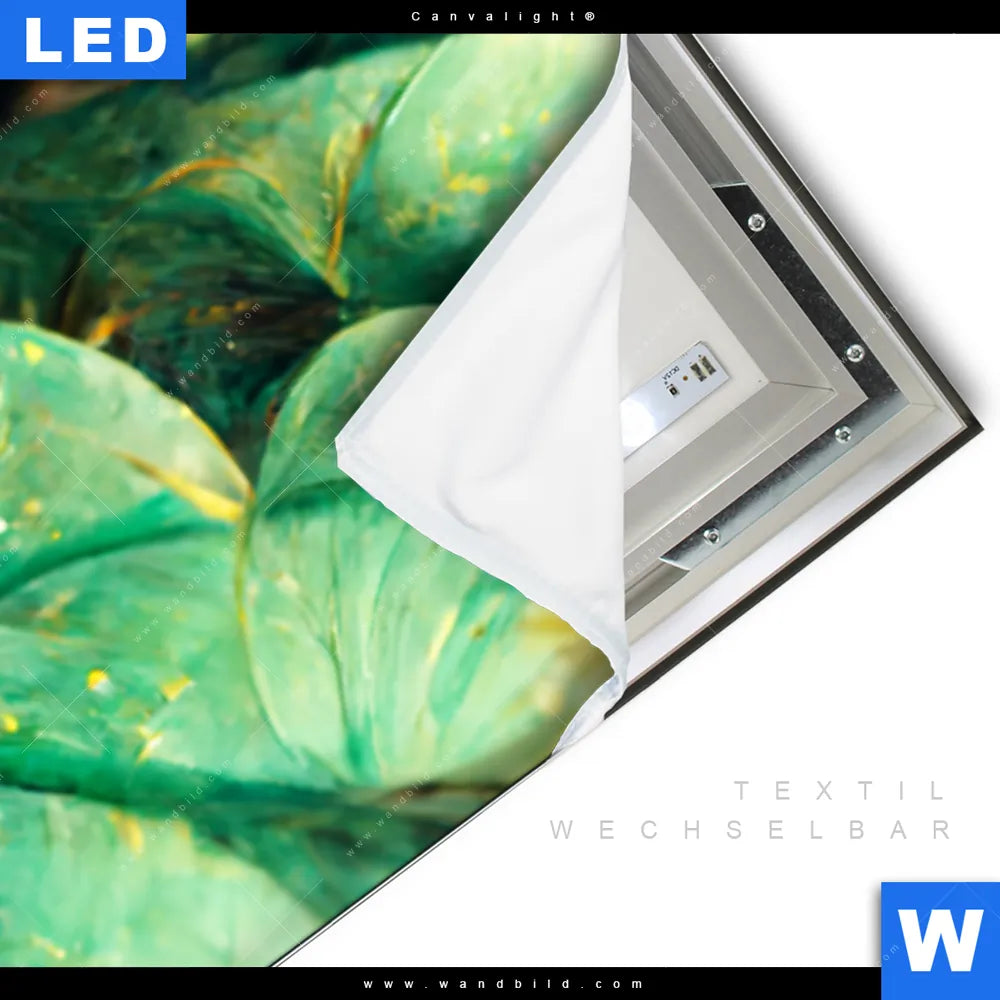 LED-Textilrahmen-Bild mit austauschbarem Blumen - Botanik, Muster - Texturen Textil-Druck (Wechselbild)