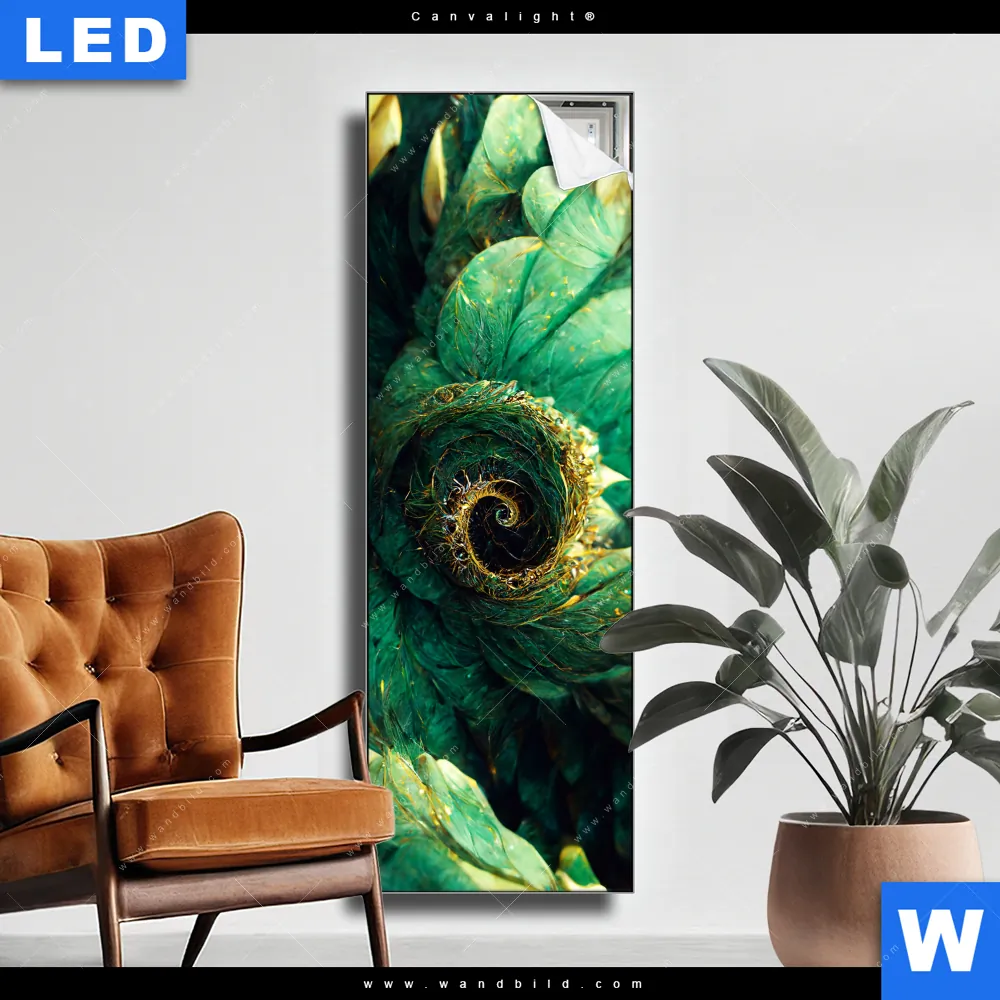 Canvalight® TEX Leuchtbild | Grüne Spiralblätter | Schmal