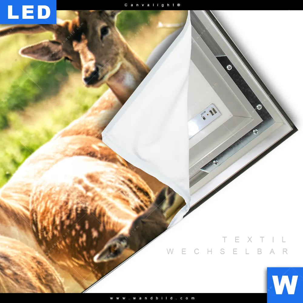 Canvalight® TEX Leuchtbild | Gruppe Rotwild | Panorama