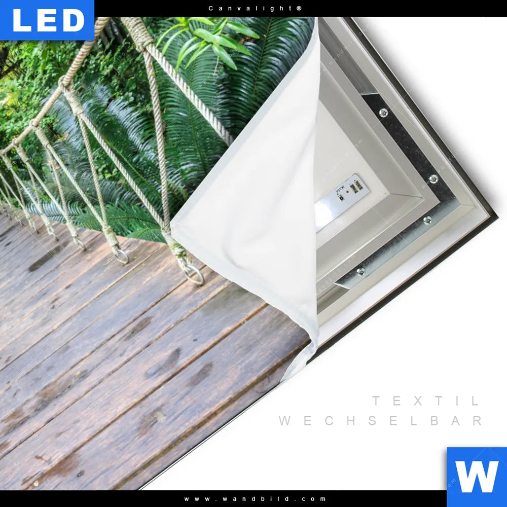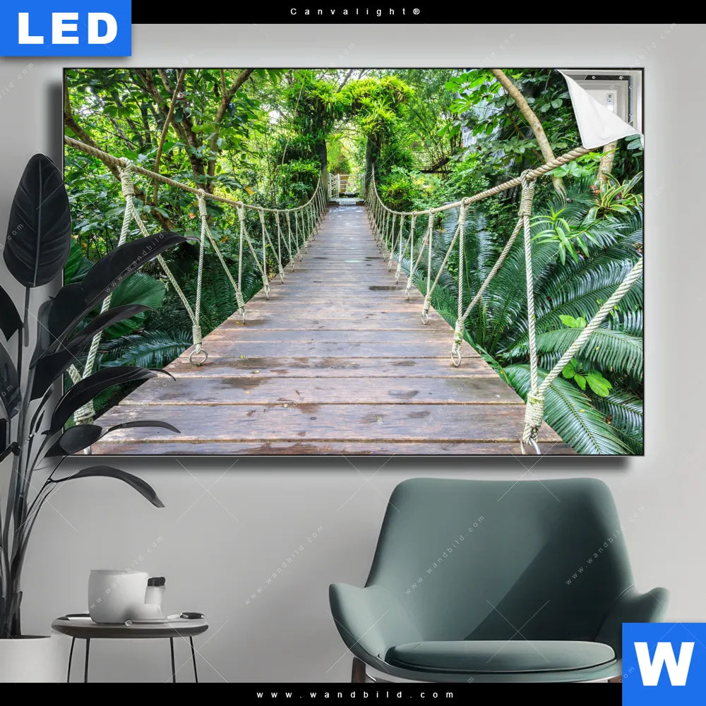 Canvalight® TEX Leuchtbild | Hängebrücke im Dschungel | Querformat