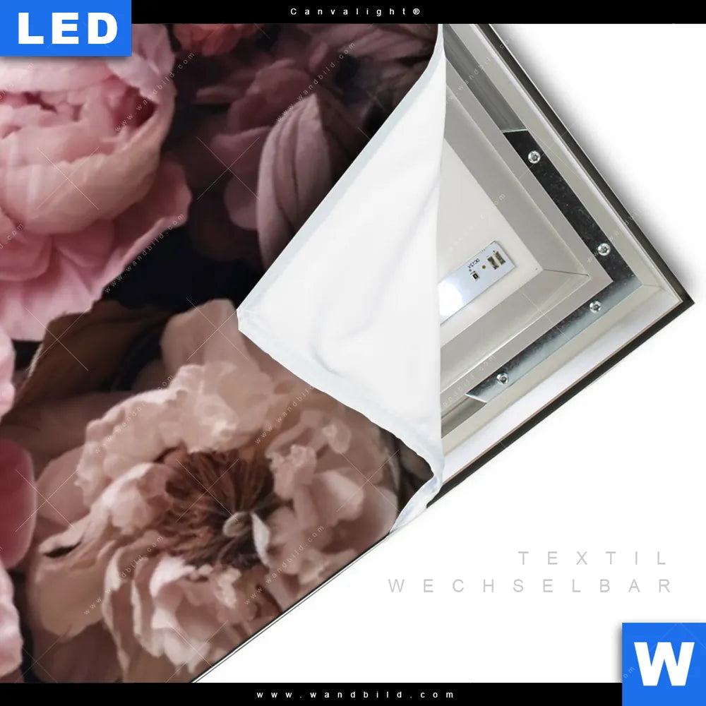 LED-Textilrahmen-Bild mit austauschbarem Blumen - Botanik Textil-Druck (Wechselbild)
