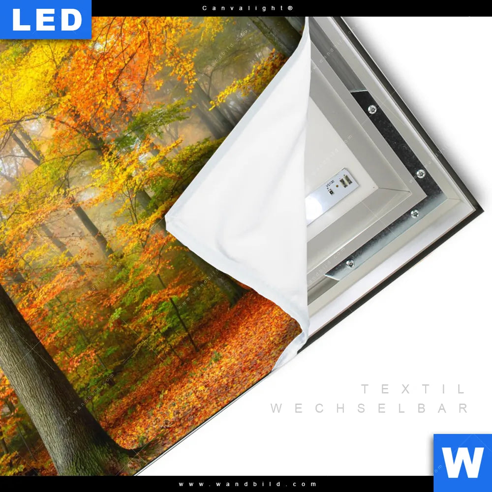 LED-Textilrahmen-Bild mit austauschbarem Landschaften, Wald - Bäume Textil-Druck (Wechselbild)