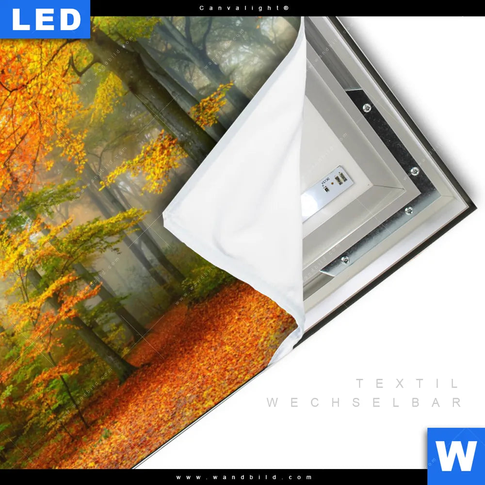 LED-Textilrahmen-Bild mit austauschbarem Landschaften, Wald - Bäume Textil-Druck (Wechselbild)