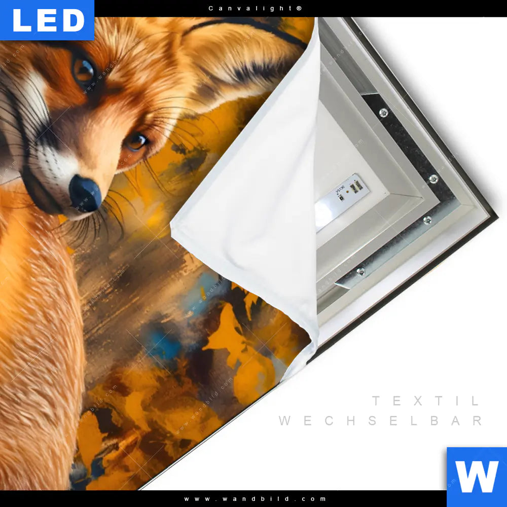 Canvalight® TEX Leuchtbild | Herbstzeit mit Rotfuchs | Hochformat