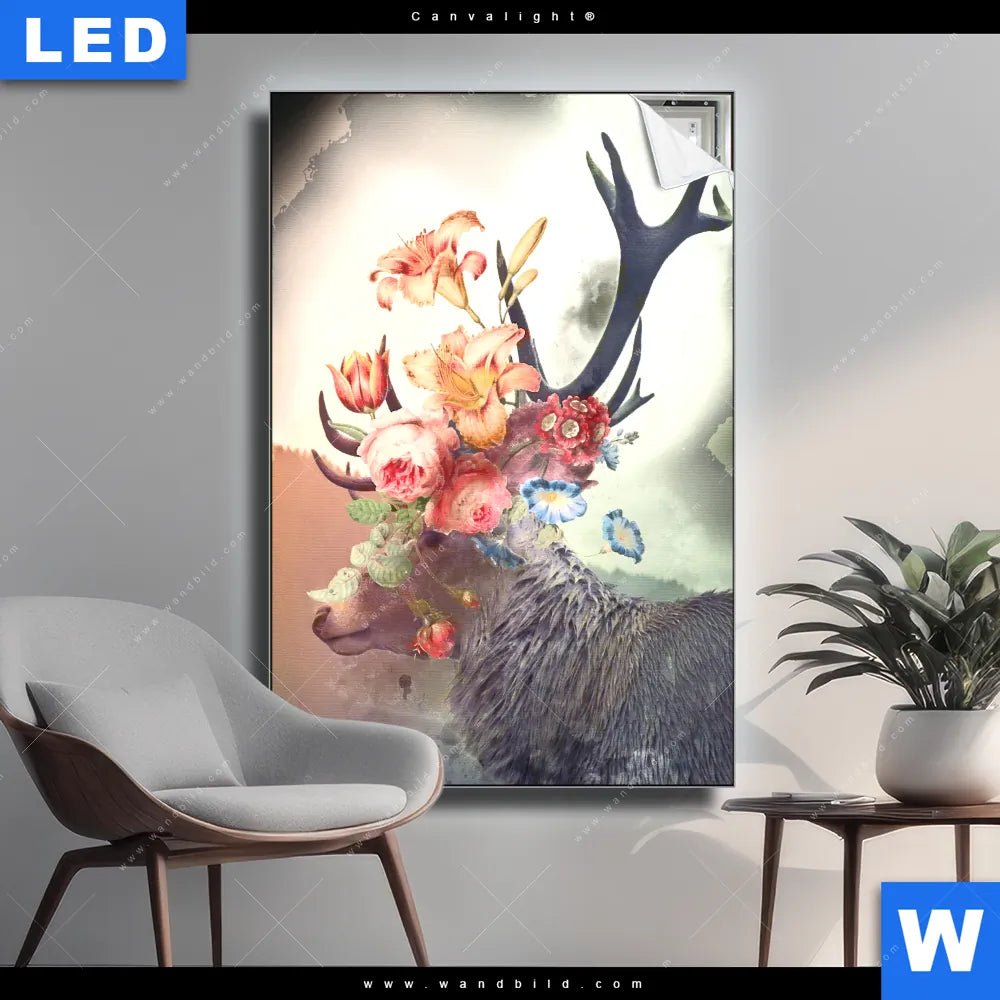 Canvalight® Leuchtbild | Hirsch & Blumen | Hochformat