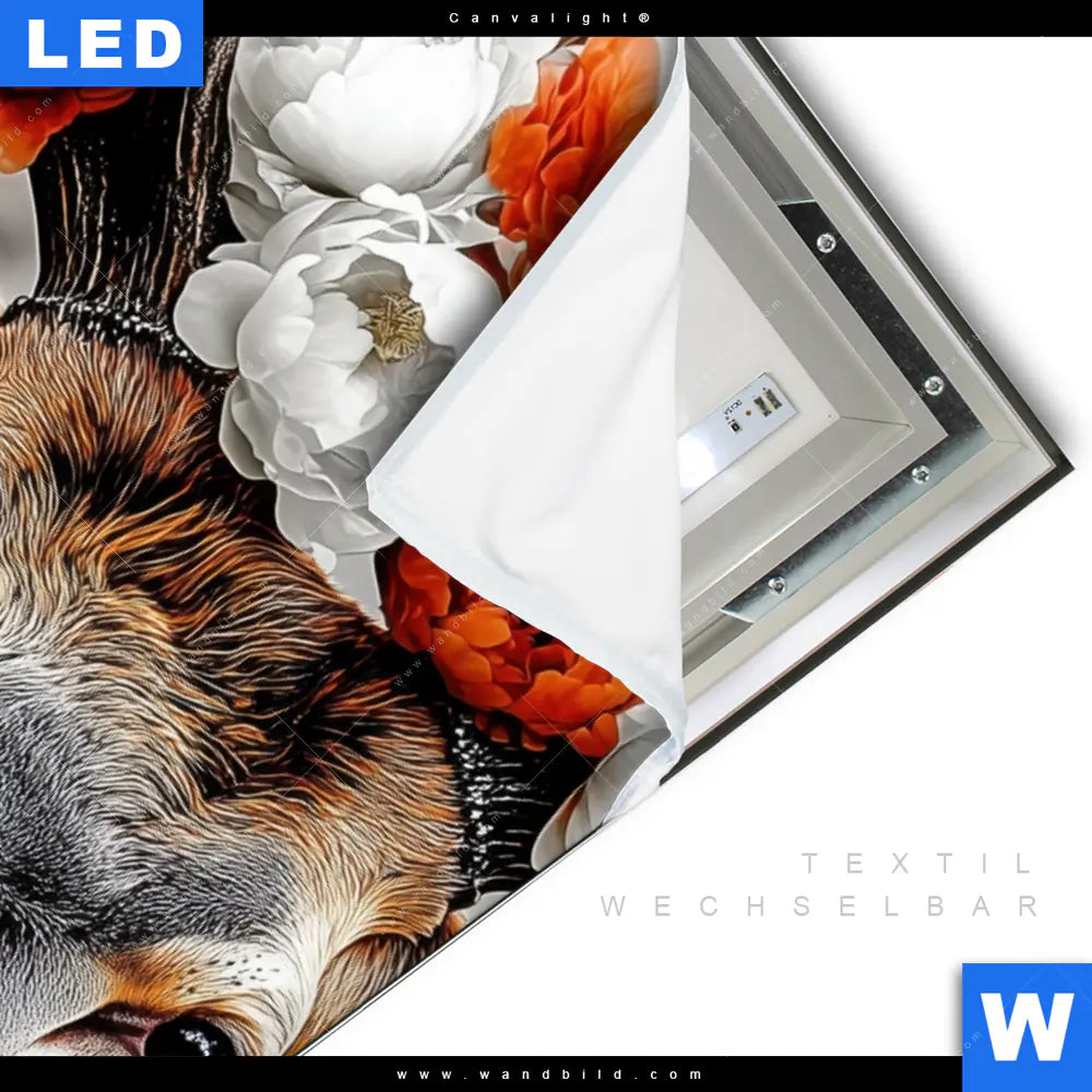 LED-Textilrahmen-Bild mit austauschbarem Tierwelt, Blumen - Botanik Textil-Druck (Wechselbild)