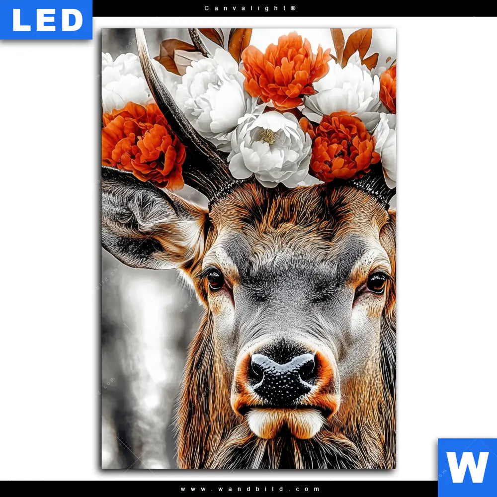 Canvalight® Leuchtbild | Hirsch mit Blumenkrone | Hochformat