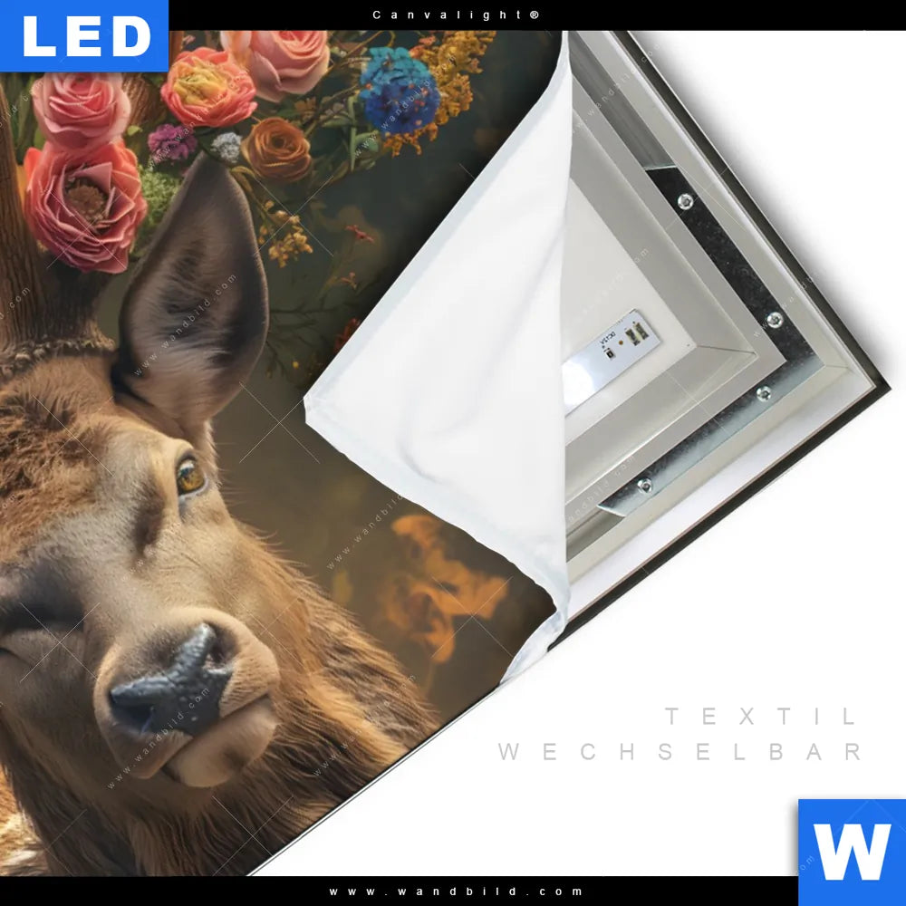 Canvalight® TEX Leuchtbild | Hirsch mit floralem Geweih | Querformat