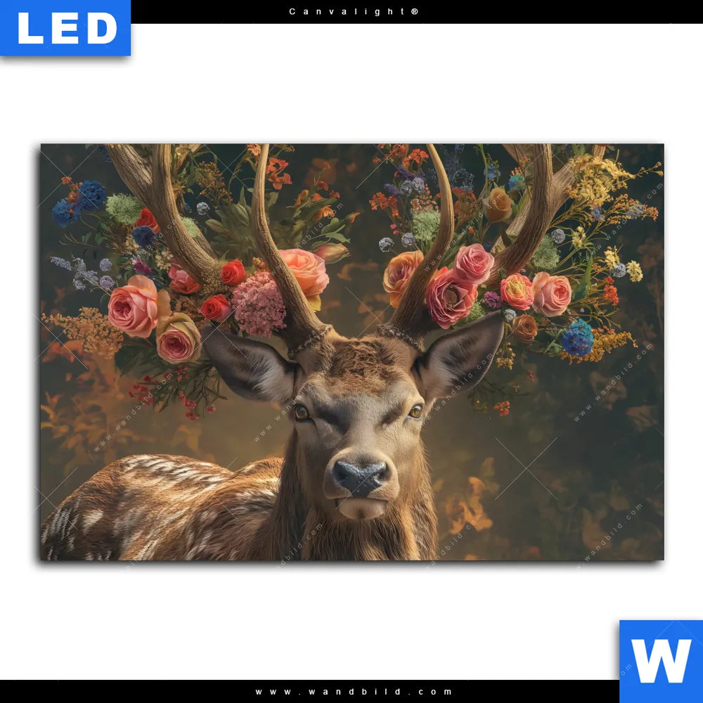 Canvalight® Leuchtbild | Hirsch mit floralem Geweih | Querformat