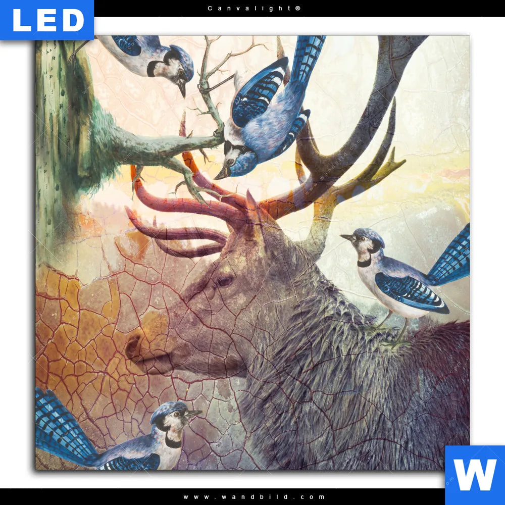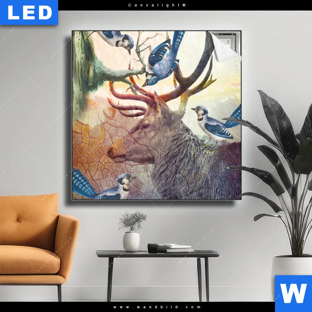 Canvalight® Leuchtbild | Hirsch & Vögel | Quadrat