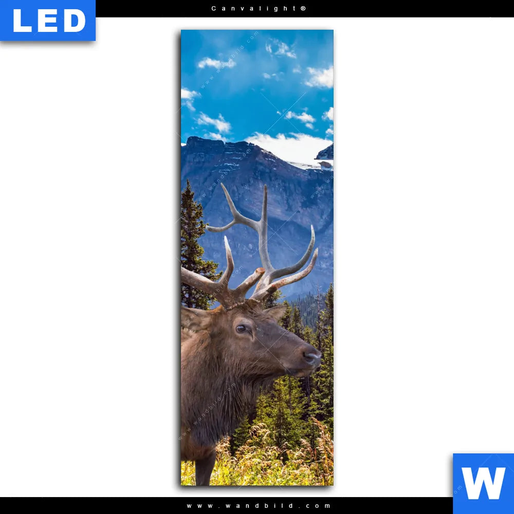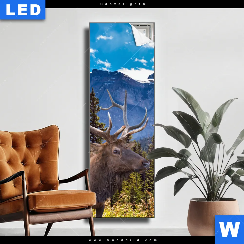 Canvalight® Leuchtbild | Hirsch vor Bergkulisse | Schmal