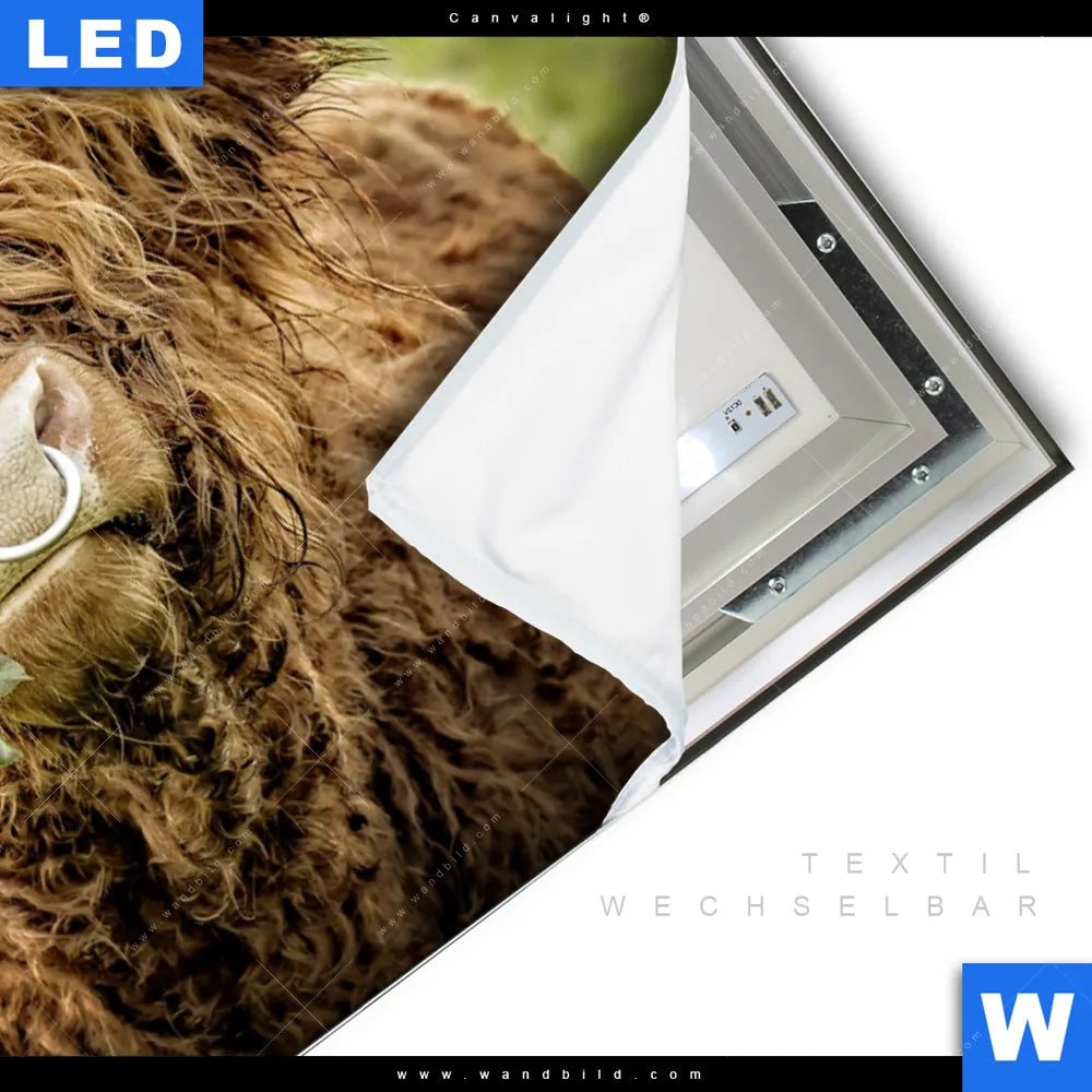 Canvalight® TEX Leuchtbild | Hochland-Rind mit Nasenring | Querformat