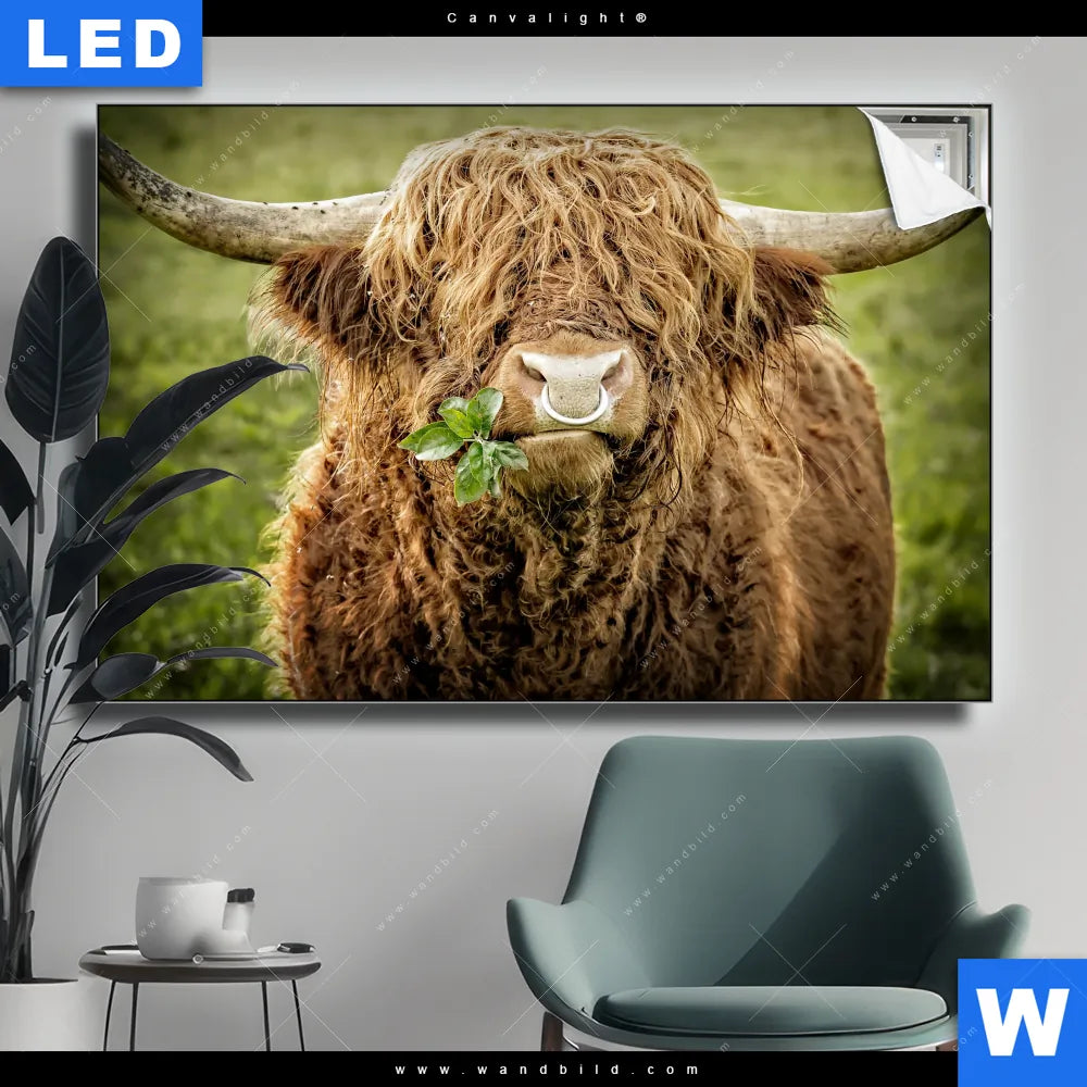 Canvalight® Leuchtbild | Hochland-Rind mit Nasenring | Querformat
