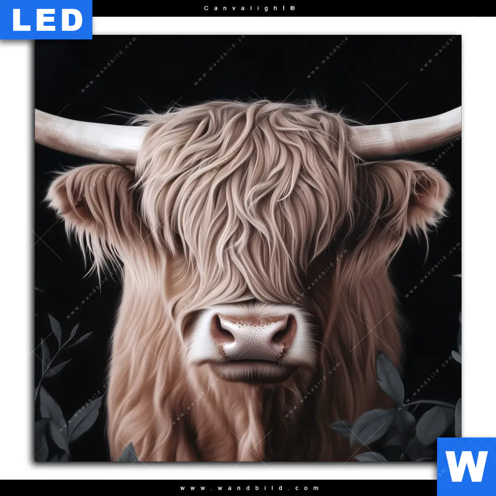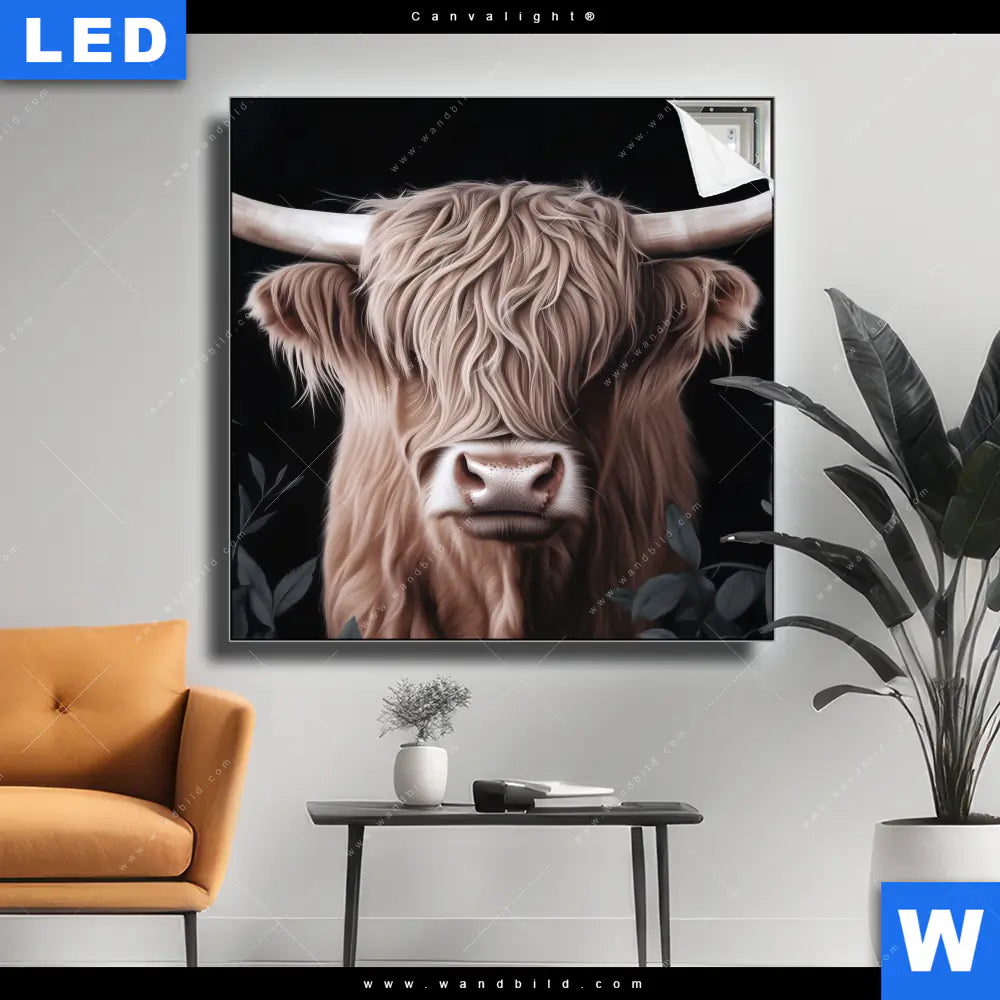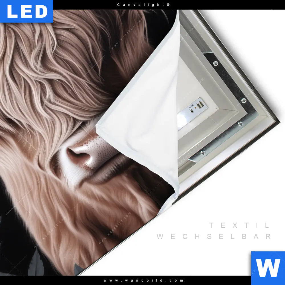 Canvalight® TEX Leuchtbild | Hochlandrind - Wilde Schönheit | Quadrat