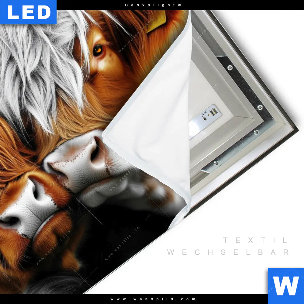 Canvalight® TEX Leuchtbild | Hochlandrinder - Harmonie der Natur | Quadrat