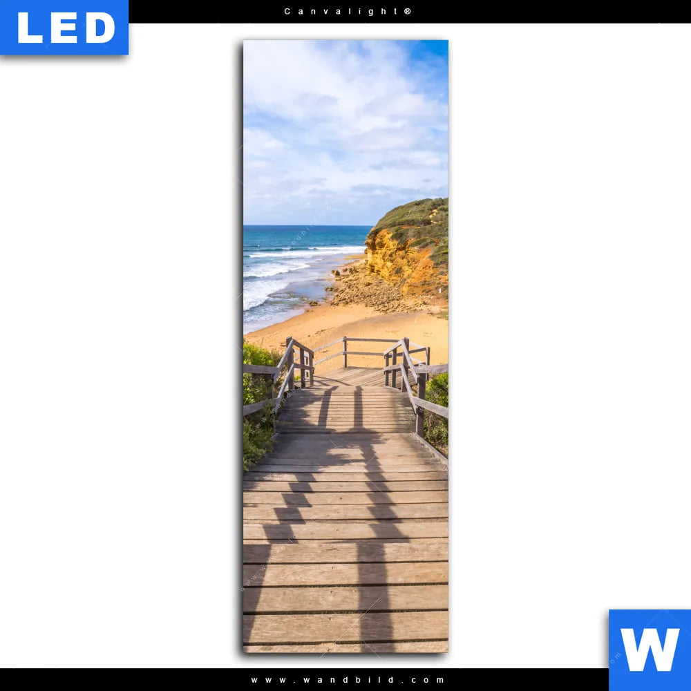 Canvalight® Leuchtbild | Holztreppe zum einsamen Strand | Schmal