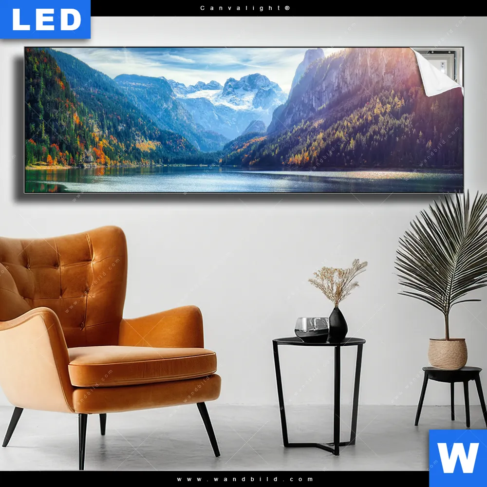 Canvalight® TEX Leuchtbild | Idyllischer Bergsee im Gebirge | Panorama