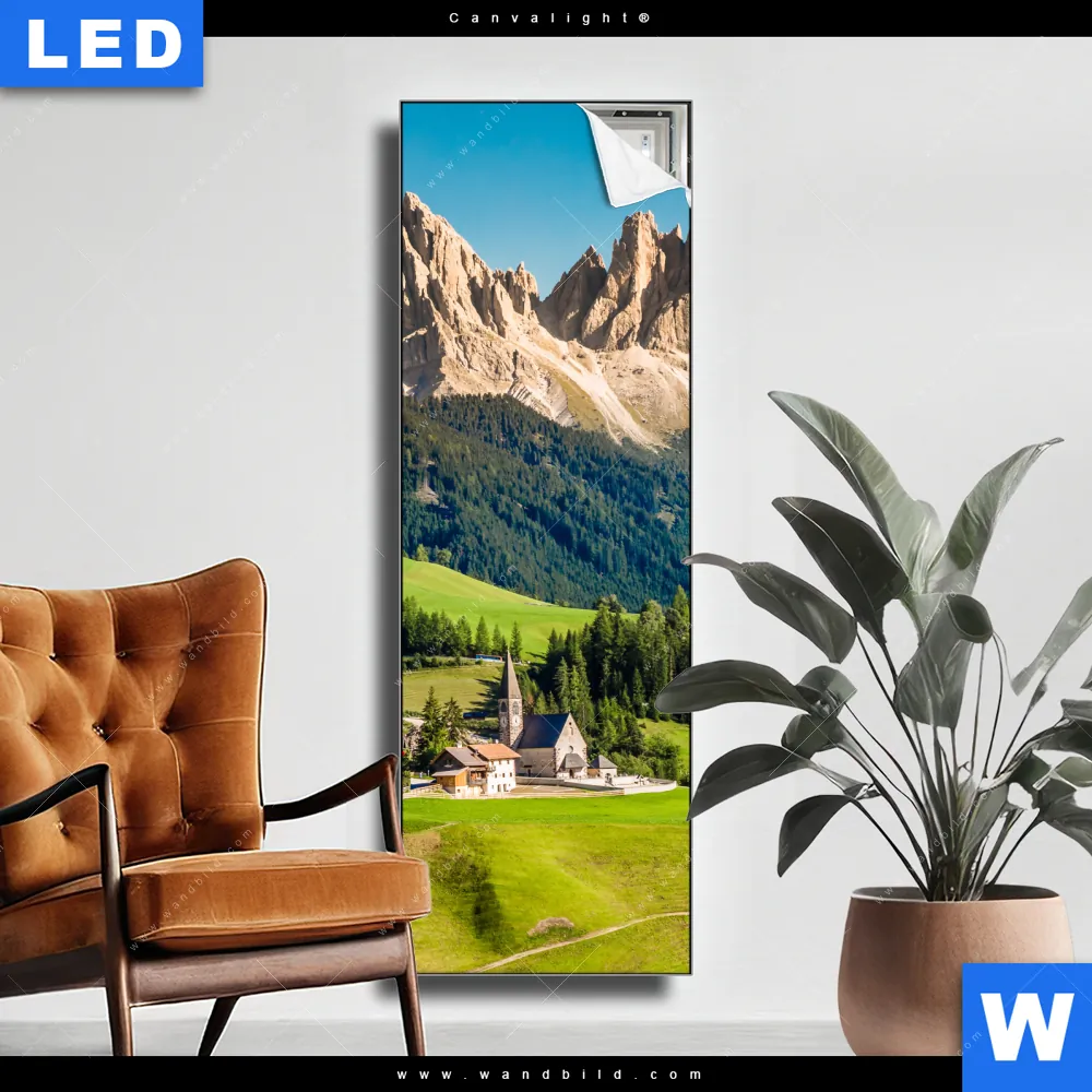 Canvalight® TEX Leuchtbild | Idyllisches Dorf in den Bergen | Schmal