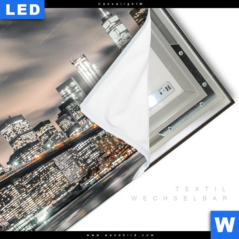 LED-Textilrahmen-Bild mit austauschbarem Städte - Skylines Textil-Druck (Wechselbild)