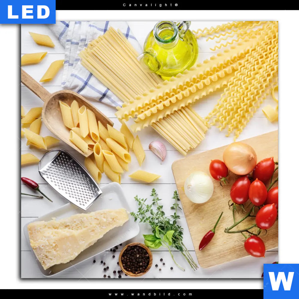 Canvalight® Leuchtbild | Italienische Pasta Vielfalt | Quadrat