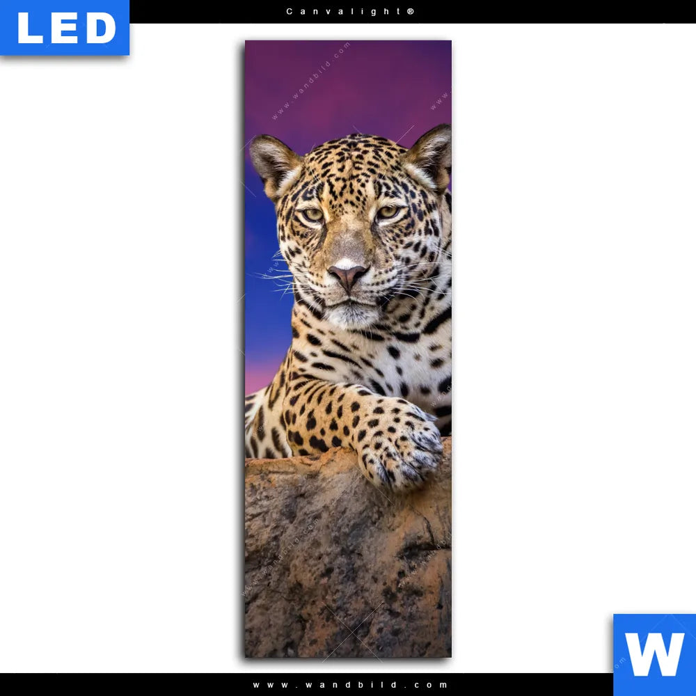 Canvalight® Leuchtbild | Jaguar auf Felsen | Schmal