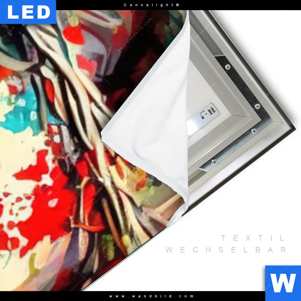 LED-Textilrahmen-Bild mit austauschbarem Porträts - Menschen Textil-Druck (Wechselbild)