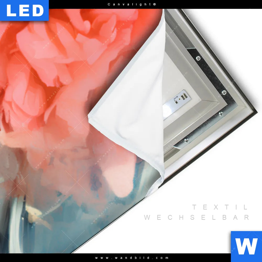 LED-Textilrahmen-Bild mit austauschbarem Porträts - Menschen, Blumen - Botanik Textil-Druck (Wechselbild)