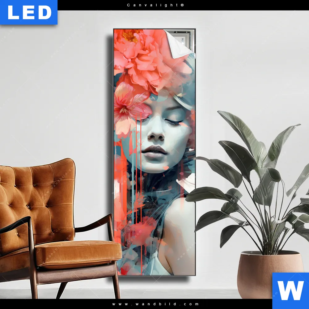 Canvalight® Leuchtbild | Jolanda - Frau mit Blumen im Haar | Schmal