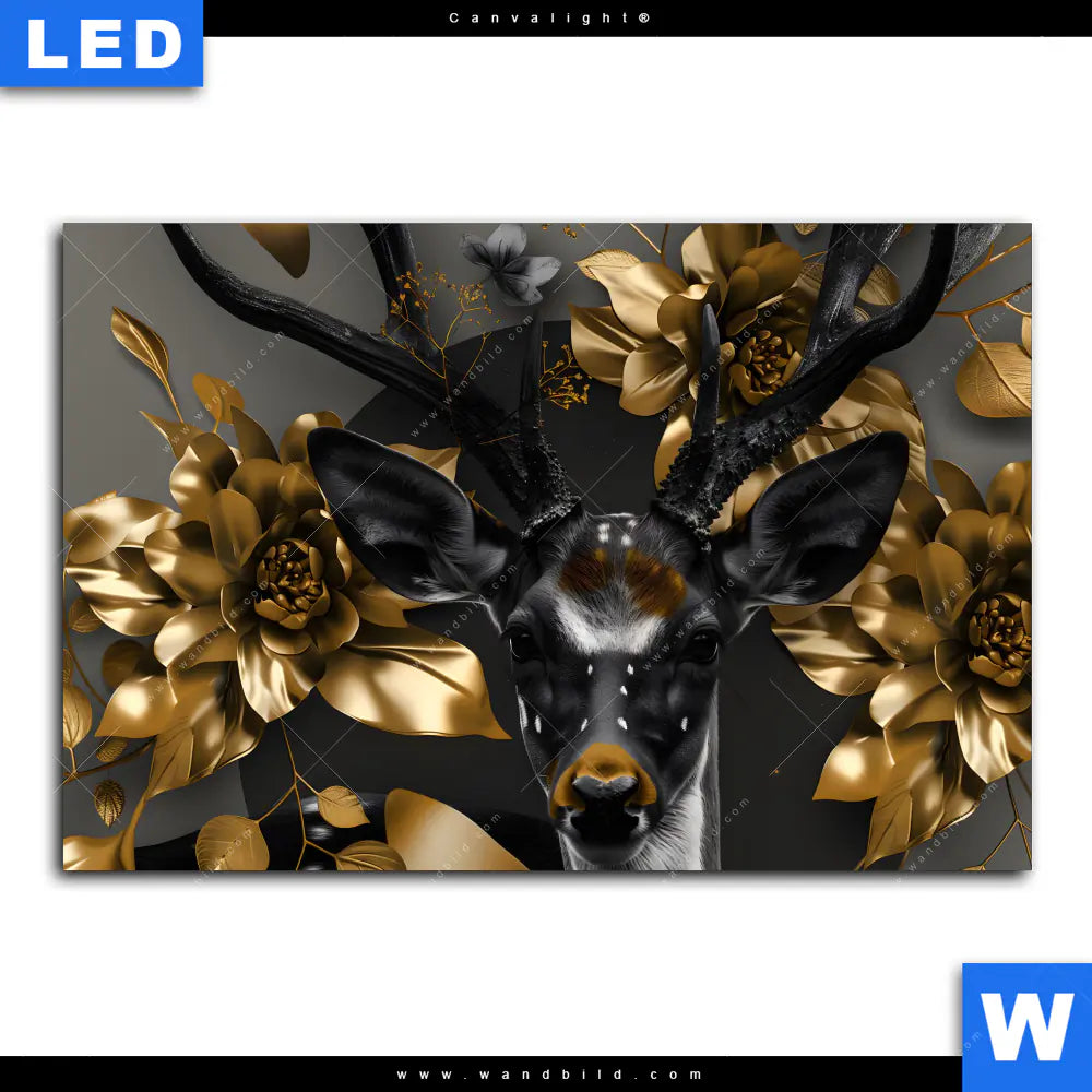 Canvalight® Leuchtbild | Junger Hirsch und Goldblumen | Querformat
