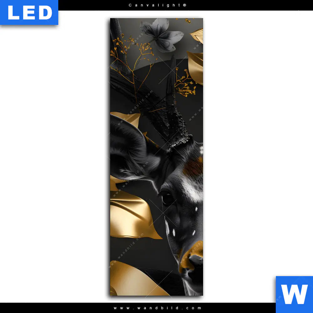 Canvalight® Leuchtbild | Junger Hirsch und Goldblumen | Schmal